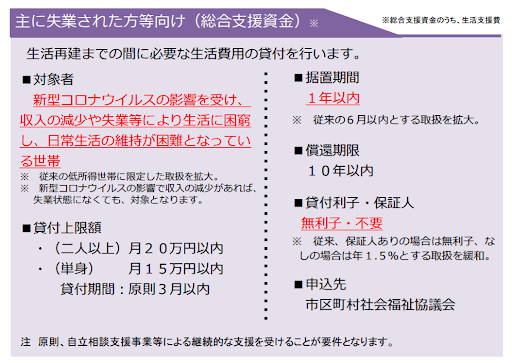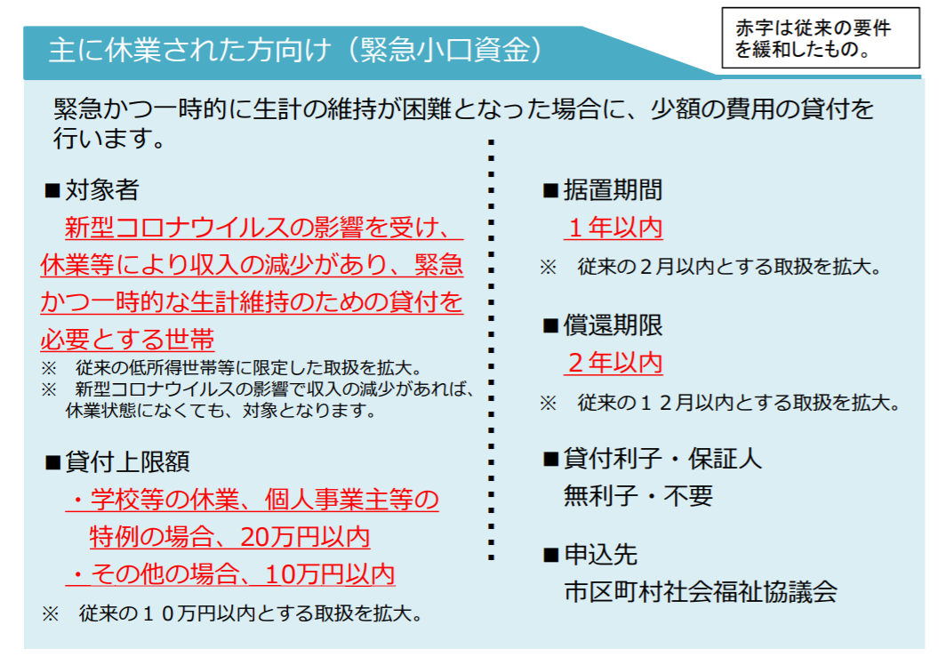 ⽣活福祉資⾦制度による緊急⼩⼝貸付等の特例貸付について