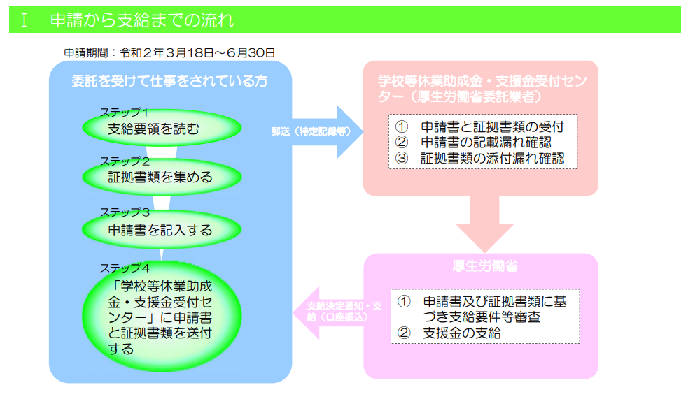 こちらの支給申請の手引き(厚生労働省)を参考に申請をお願いいたします。