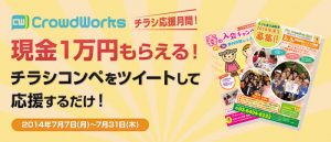 7月はチラシ作成コンペ応援月間!チラシ作成コンペのお仕事をツイートで応援して現金1万円をもらおう!キャンペーン