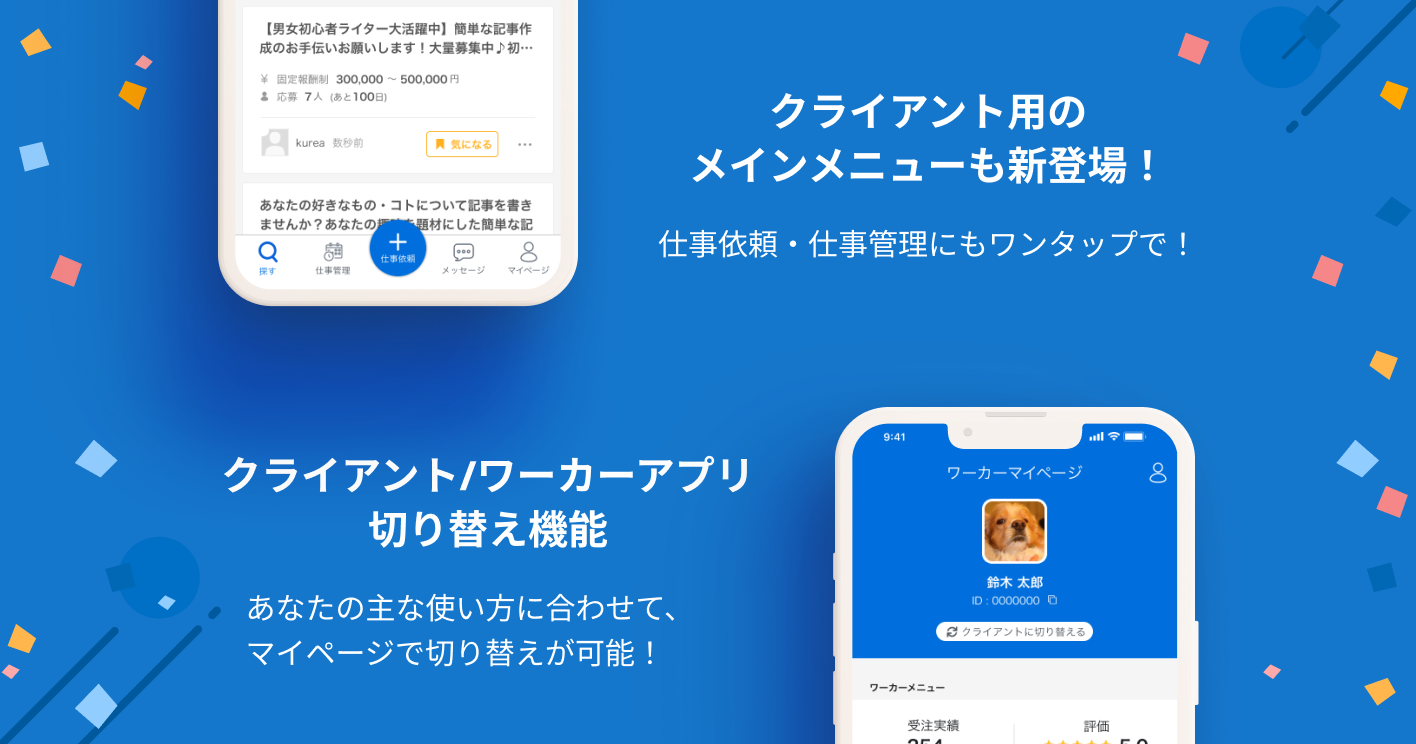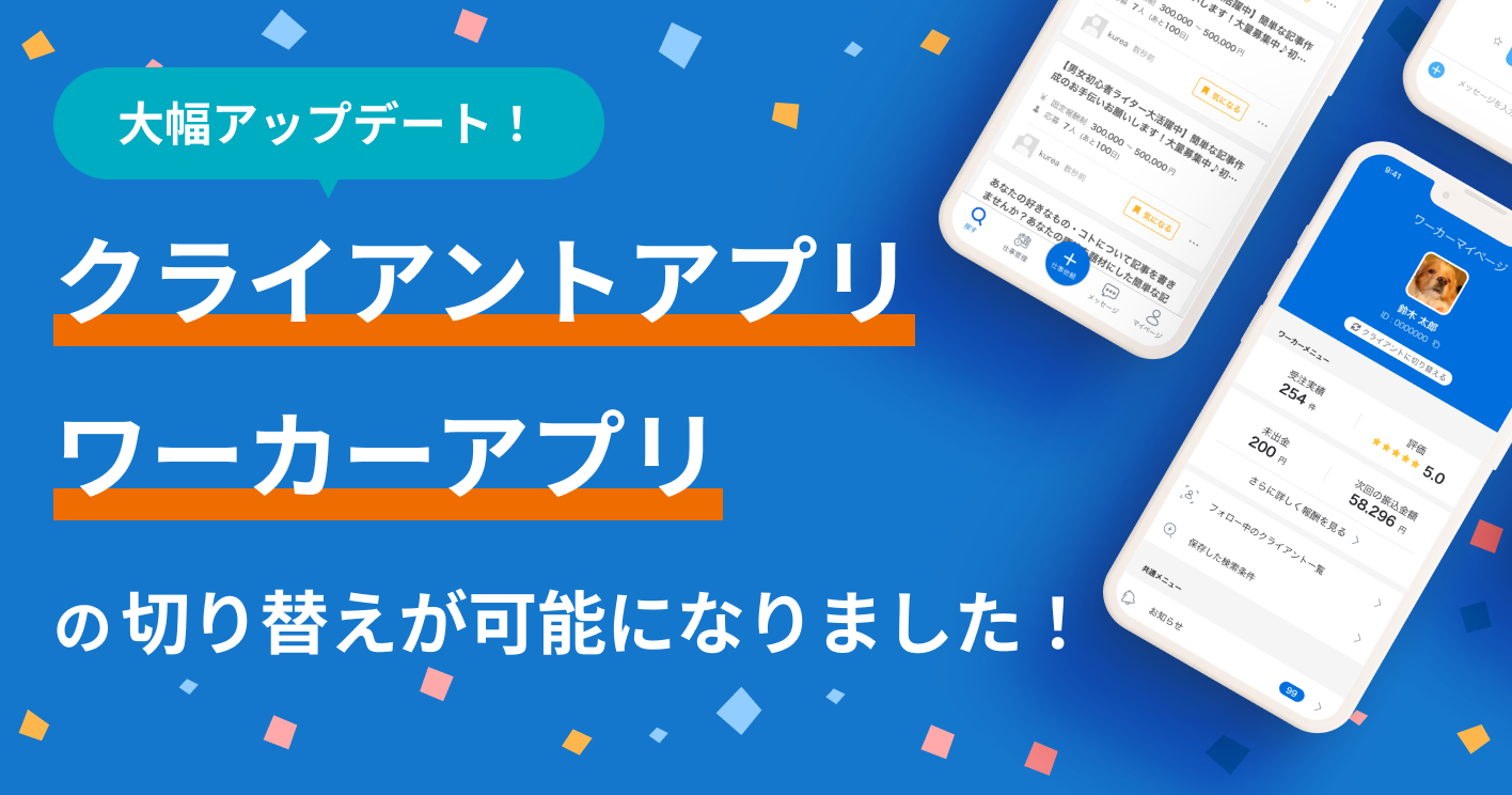 【アプリアップデート第五弾】クライアントアプリ/ワーカーアプリの切り替えが可能になりました!