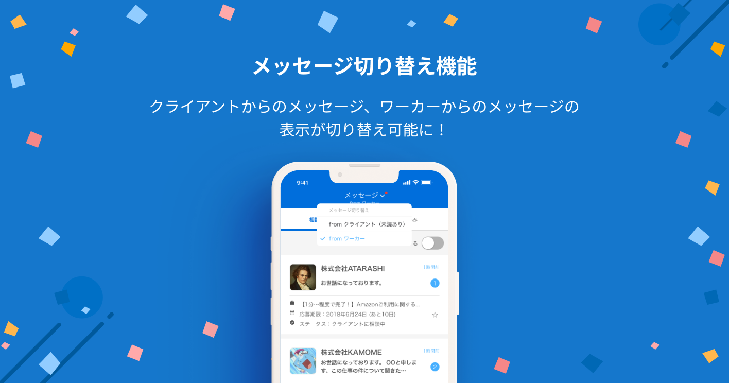 1.クライアント向けメニュー新登場!クライアント/ワーカーアプリの切り替えが可能になりました