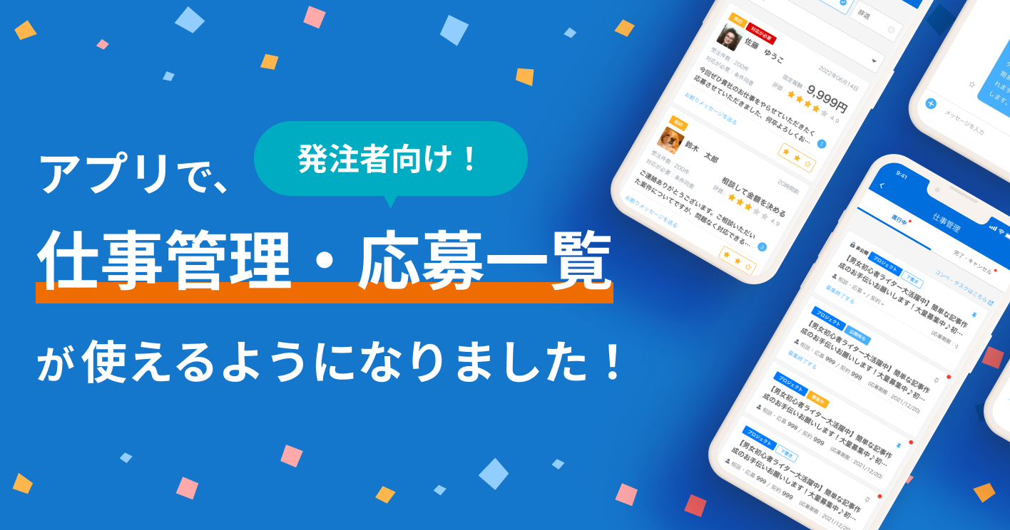 【アプリアップデート第四弾】アプリで、仕事管理や応募一覧をご利用いただけるようになりました!(発注者向け機能)