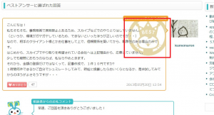 相談者は寄せられた複数の回答の中から、最も参考になった回答を”ベストアンサー”として選択することができます。
