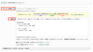 「タイトル(仕事名)」では、どういった仕事内容かがわかるようなタイトルをつけましょう!