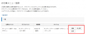 お仕事メニュー登録画面の一覧にあるお仕事メニューから「編集」「削除」「公開/非公開」の変更ができます。お仕事メニュー登録時は、登録されたお仕事メニューは「公開」されている状態となります。一旦、登録だけしておきたい場合は、登録後に「非公開」を選択してください。