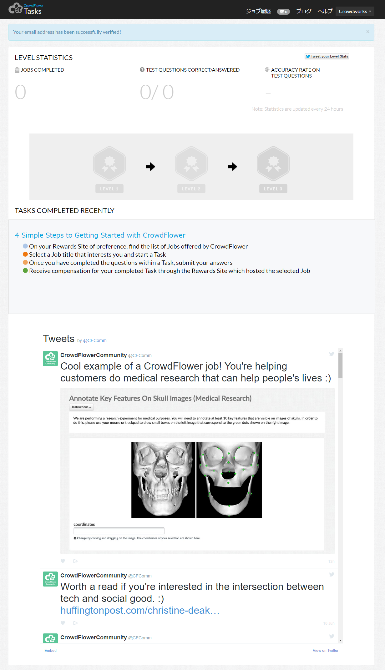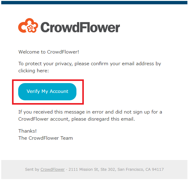 4. 先ほど「3.」で登録したメールアドレスに届いているCrowdFlowerからのメールを開き、ボタンを押す
